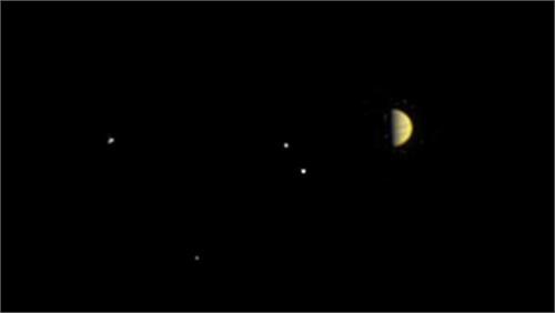 به گزارش ایسنا به نقل از گیزمگ، این فضاپیما هفته گذشته در فاصله 11 میلیون کیلومتری از مشتری، تصویری از سیاره به همراه چهار قمر بزرگ آن یعنی آیو، اروپا، گانیمد و کالیستو ثبت کرده است. خانواده سیاره مشتری شامل 62 قمر تایید شده است که از این لحاظ در منظومه شمسی رتبه نخست را دارد.